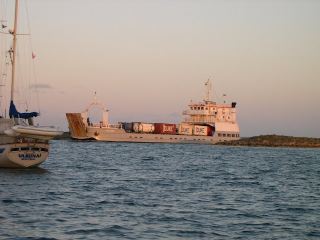 Here's a picture of the supply boat coming through the narrow entrance at Royal.