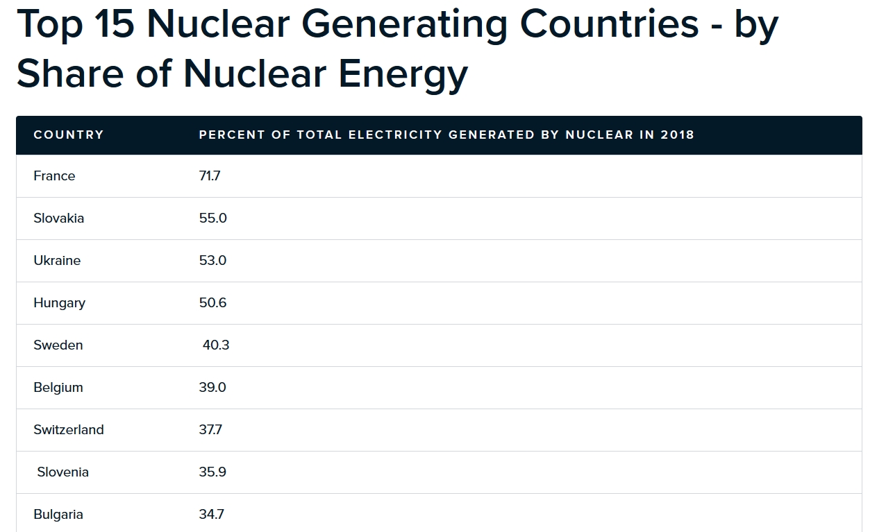I've added a chart to my earlier post showing that France is generating over 70% of its electricity from nuclear.