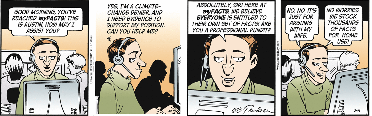 Doesn't matter! Our patented two-pronged approach is foolproof! First, we find the contrarians, and create an aura of plausibility around them. Then, we push, push, push! ensuring our that our message, our facts find every willing ear. With this can't miss approach, we create debate - EVEN when there wasn't one.
