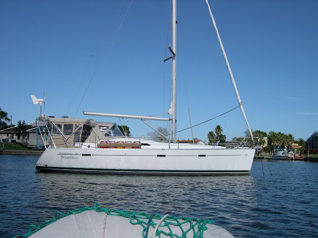 Standard Beneteau 423 arch mounted on a 393. Custom wind generator pole. I hang a 10'06" RIB with a 15hp 2 stroke on it.